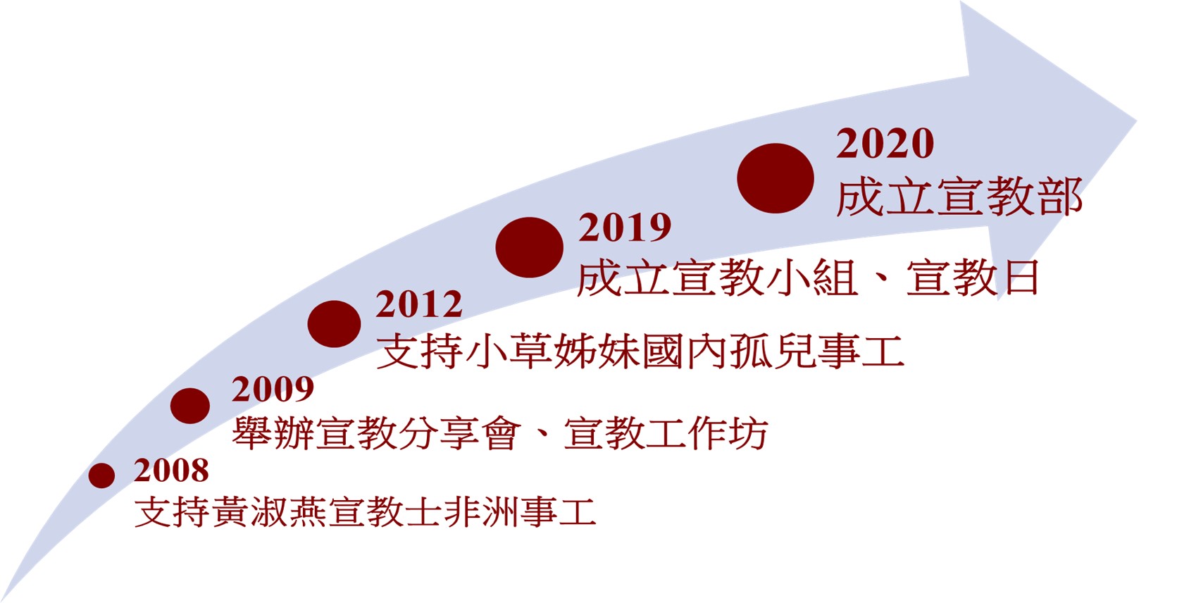 (周彩霞姑娘任教) • 參觀清真寺,認識伊斯蘭教 9-12月 • 宣教主日 主日崇拜 : 陸倫泉牧師證道 宣教角: 24位肢體願意為宣教士代禱 • 宣教講座 由ME-CARE差會楊欽緯醫生分享 ”21世紀全球最大的未得之民-穆斯林面面觀”及其差會的宣教異象和事工 • 探訪烏都鄰舍中心(服事南亞裔士) 宣教部2022 介紹歷代宣教士: (1) 戴德生(James Hudson